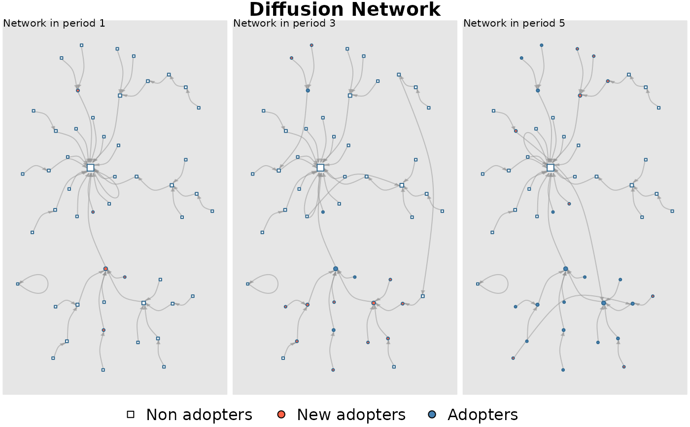 diffnet_multi <- rdiffnet(50, 5, seed.p.adopt = list(0.1,0.1))